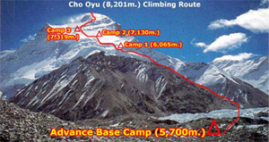 The view from Middle Camp to Cho Oyu